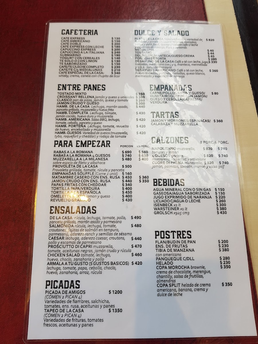 Morning visitors often enjoy a warm café con leche paired with freshly baked medialunas or a satisfying desayuno americano, creating a cozy start to the day. Throughout lunchtime or into the evening, selections like milanesas, spaghetti a la Príncipe de Napoli, and slices of pizza de muzarella offer simple, satisfying meals that complement the welcoming, unpretentious atmosphere.