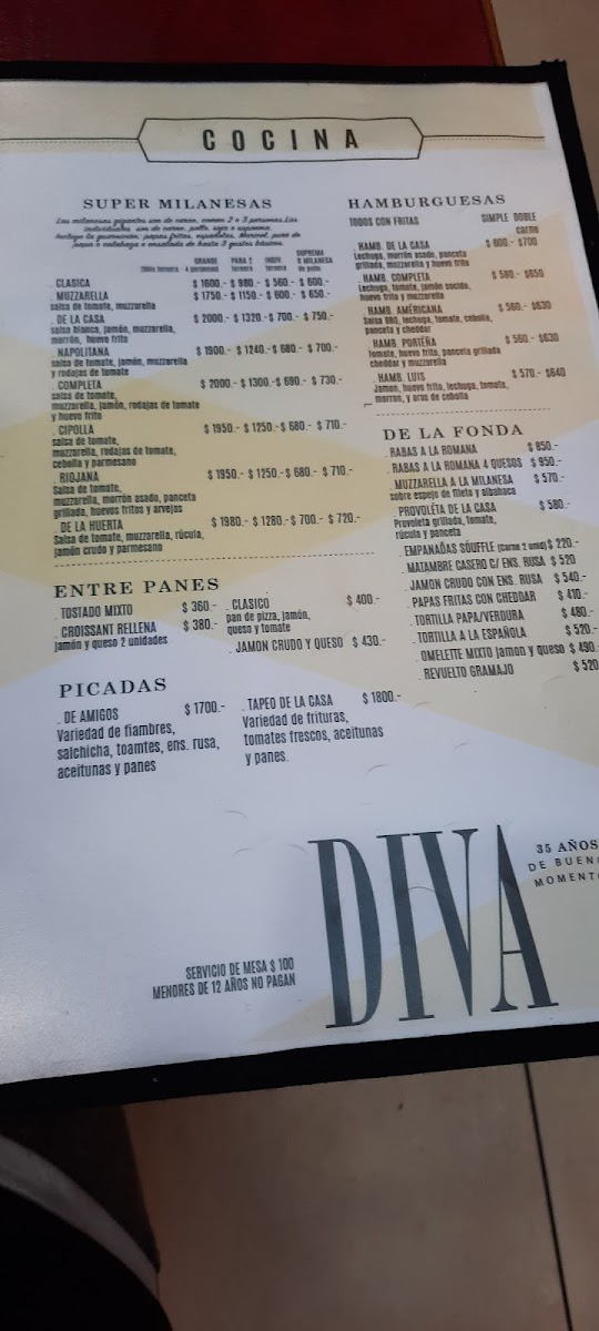 La Diva Ramos Mejia offers a relaxed menu featuring classic café fare alongside hearty bar & grill staples. The menu strikes a balance between comforting home-style dishes and familiar casual bites, making it a versatile spot for different times of the day.